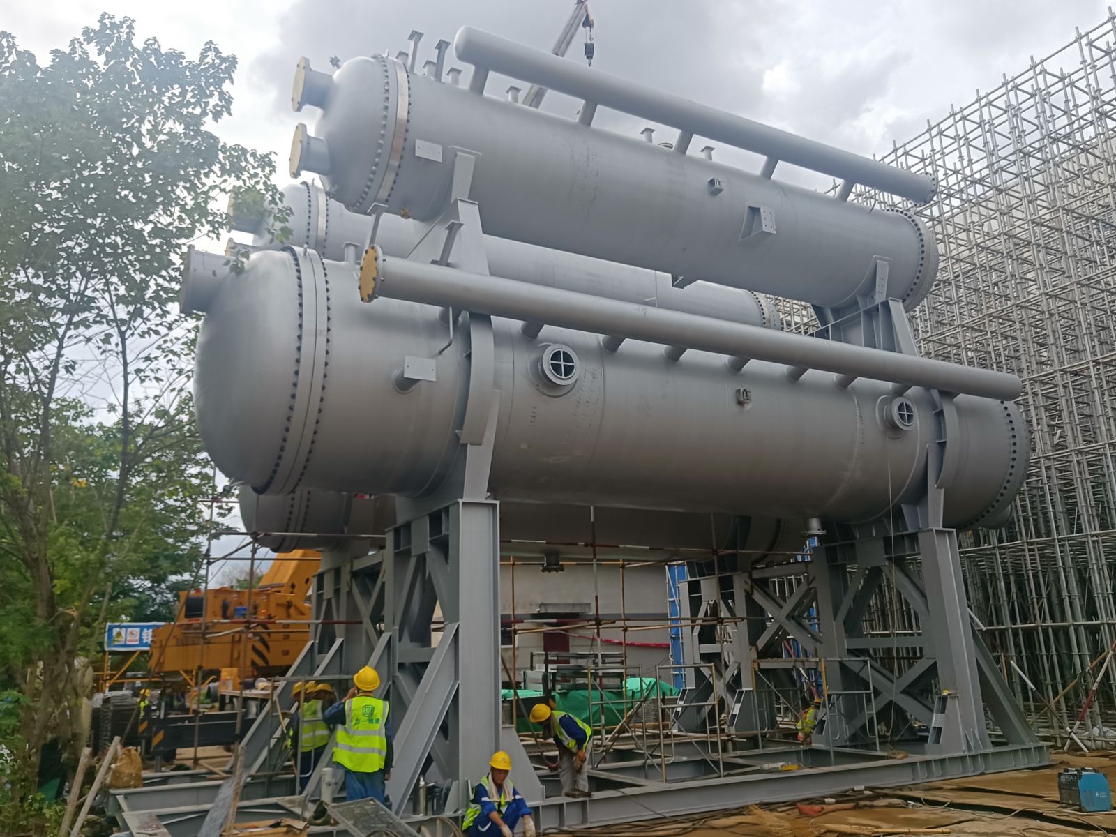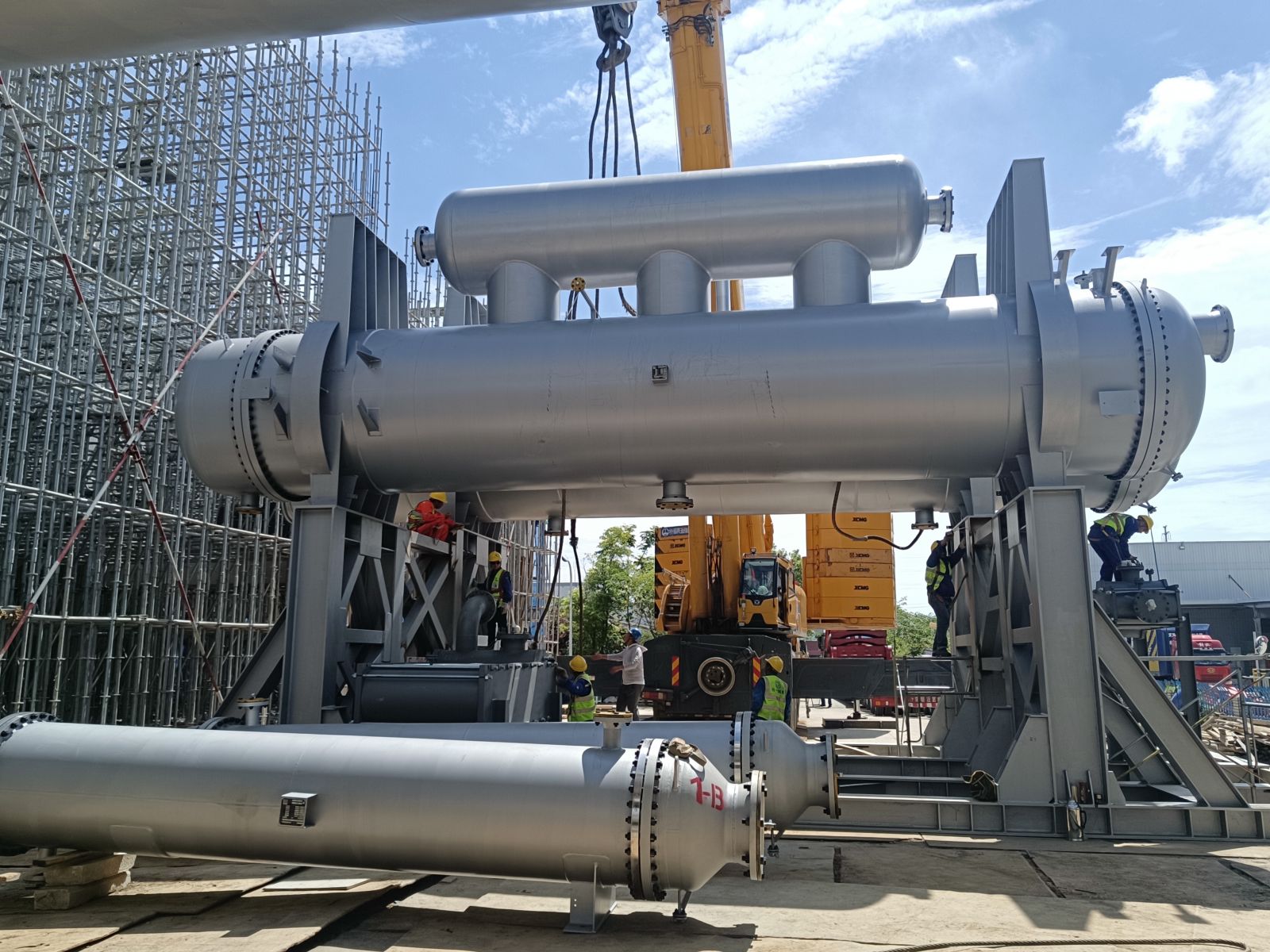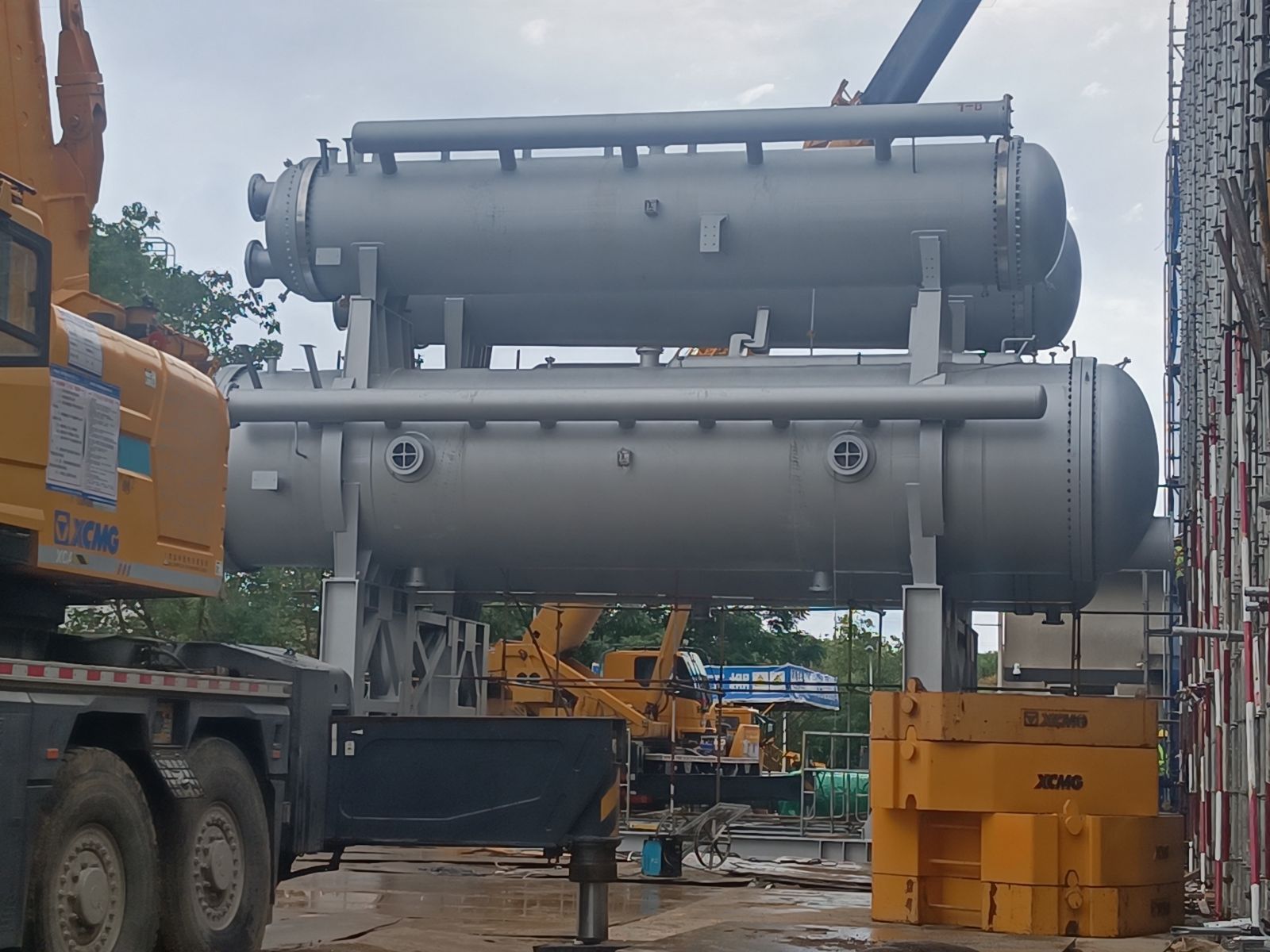 我公司為普泛能源定制的萬千瓦級低品位熱源制冷制冰設(shè)備,現(xiàn)場實現(xiàn)一次吊裝成功。該設(shè)備單套總噸位達500噸,兩套設(shè)備均一次性精準就位。其可廣泛應(yīng)用于乙二醇、合成氨、綠氨、半導(dǎo)體、電廠等多個領(lǐng)域。